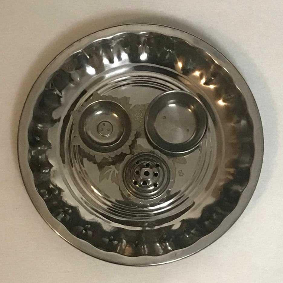 Stainless Steel Puja Thali with incense holder, Jyot , Vati Puja ,Thali Best for home Temple Aarti and Religious Gift, Size 19/19cm.