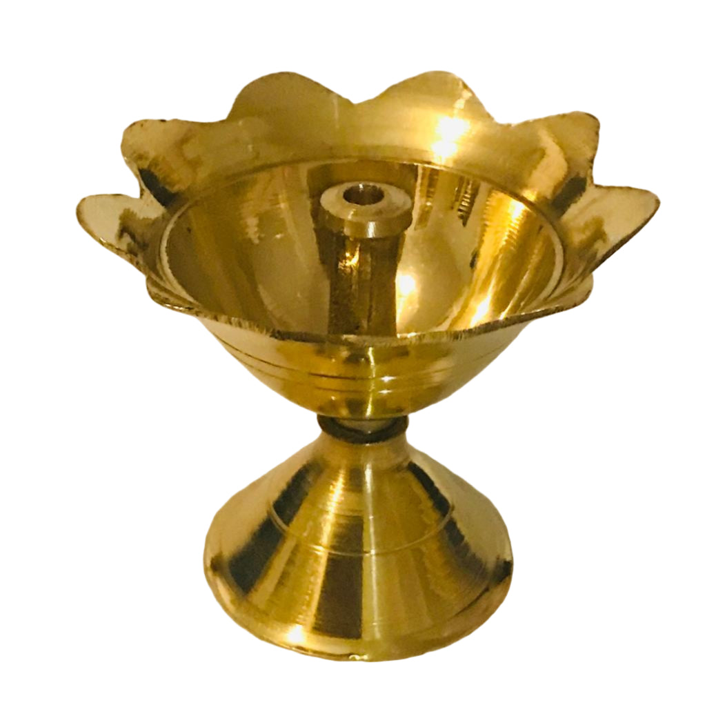 Brass Kamal Diya akhand jyot /Agarbatti with stand for puja, Size 6/5cm.